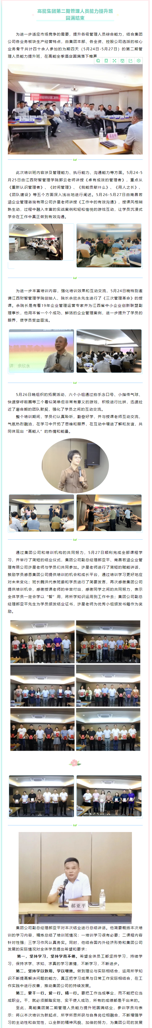 高能集團第二期管理人員能力提升班圓滿結束