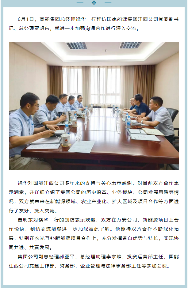 高能集團總經(jīng)理饒華一行拜訪國家能源集團江西公司