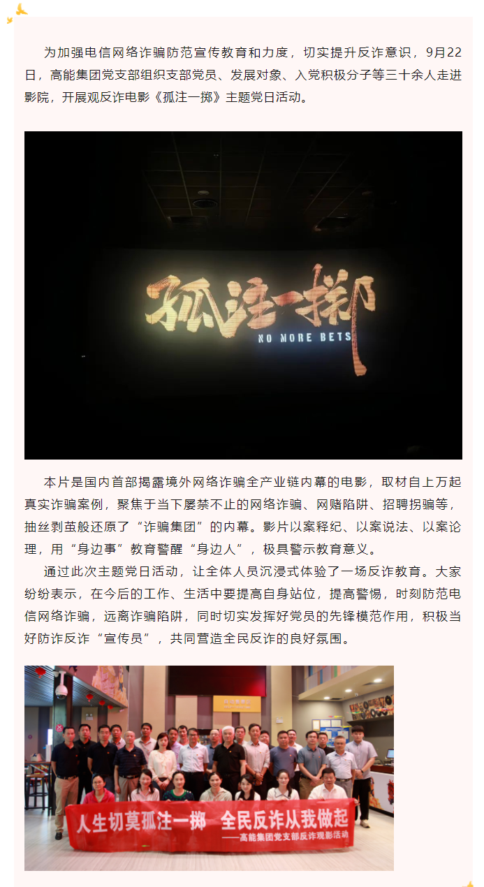 高能集團(tuán)黨支部開展觀反詐電影《孤注一擲》主題黨日活動(dòng)