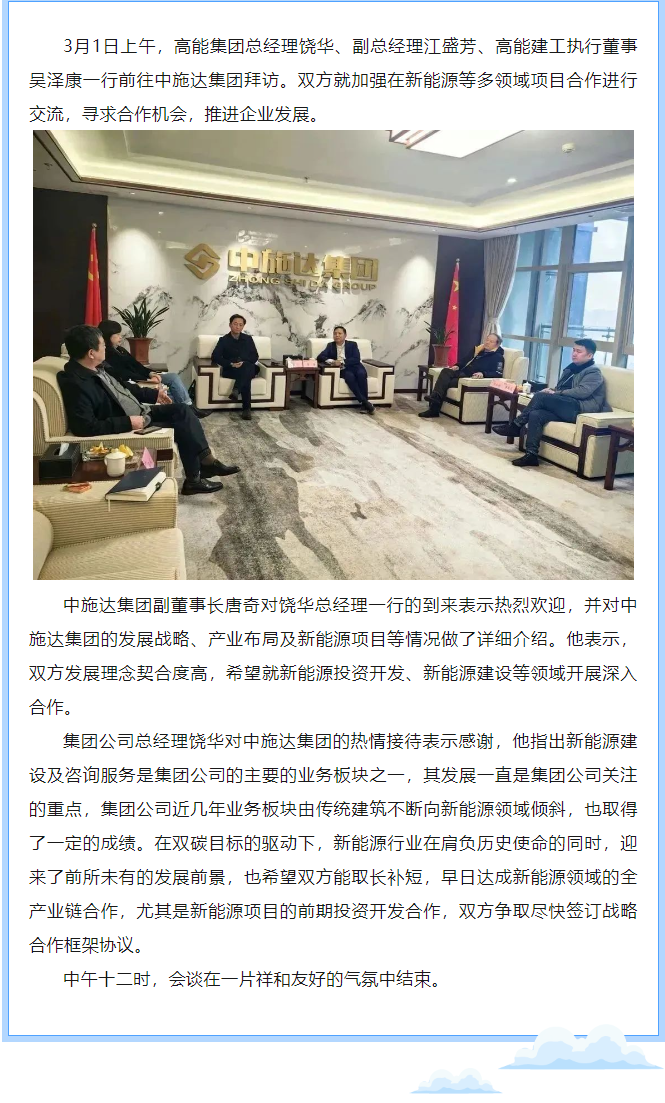 高能集團總經(jīng)理饒華一行拜訪中施達集團