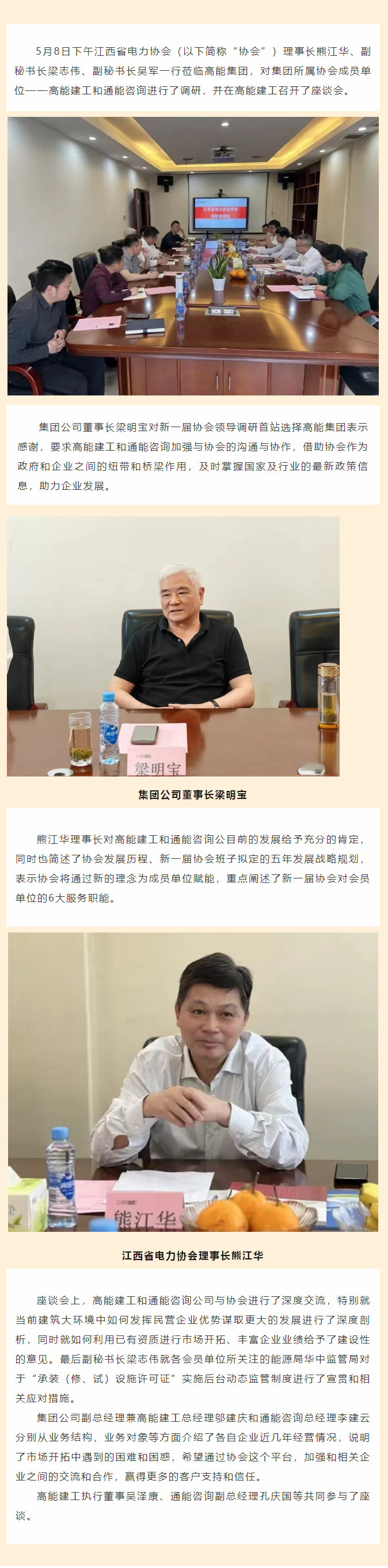 江西省電力協(xié)會(huì)熊江華理事長(zhǎng)一行蒞臨高能建工、通能咨詢調(diào)研座談
