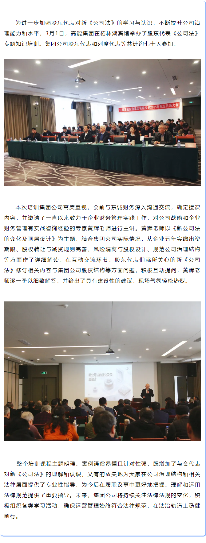 高能集團(tuán)舉辦股東代表《公司法》專題知識(shí)培訓(xùn)