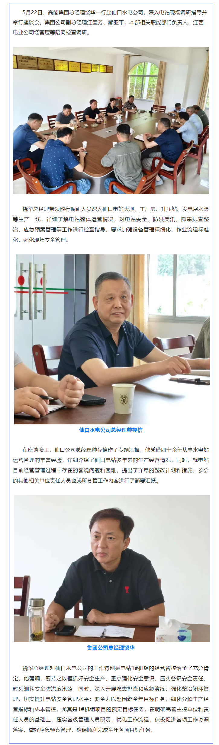 高能集團總經(jīng)理饒華一行赴仙口水電公司調(diào)研指導